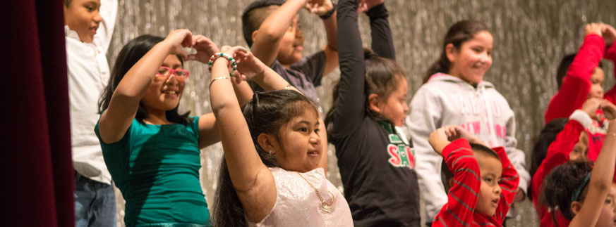 The event includes four performances – created and executed by students and parents – with enough food to feed each guest at least three times. Guests are warmly greeted by volunteers sitting at tables dressed with twinkling tea lights and pine cone Christmas trees. These are courtesy of the skilled hands of our Kids Club students. In addition to creating the décor, students invest hours perfecting skits for our audience. The mood is joyous, festive and full of excitement as guests watch these students perform. This year’s hosts, Staff member Liz Wang and board member Sergio Chavez lead us through games, tell us jokes and give shout-outs to the audience – all the while effortlessly navigating the English and Spanish interpretation.