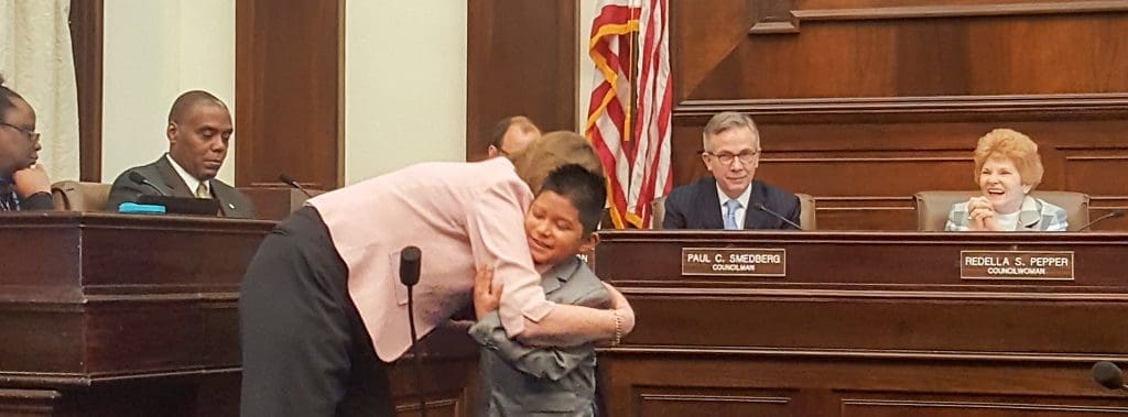 This is not Andres’* typical Saturday morning. The alarm goes off very early. Waking up his first thought is that it must be a school day—it’s usually what happens when the alarm goes off this early. But his mom reminds him this is no school day. This is the day he will be speaking at City Hall! He and his mentor Michael* will be standing in front of Alexandria’s City Council to speak about Casa Chirilagua. This is a big day!