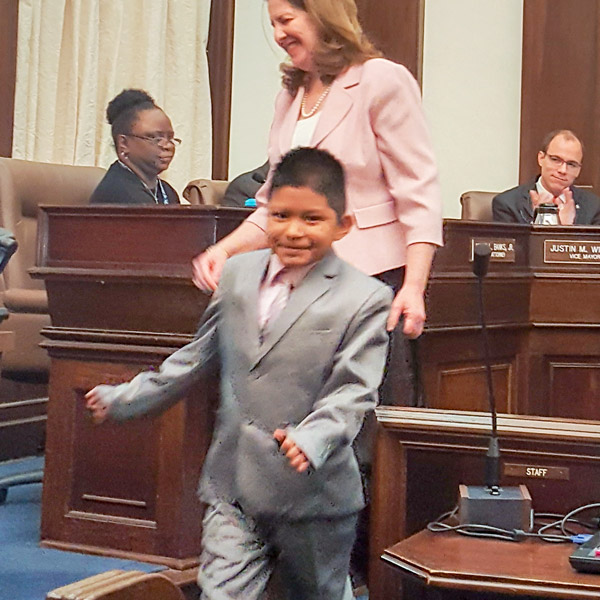 They arrive at City Hall. The group of Andres, his mentor, his mom and her friends from the local community ascend to the big room. It is here where he and Michael will soon speak. A nervous feeling briefly sneaks into him, but he knows deep down inside that he is prepared and that he will do well. His mom holds his hand while they wait. His focus shifts to their plan: give his speech to the City Council and then give Mayor Silberberg a special gift from he and his mom—a handmade purse from Guatemala.