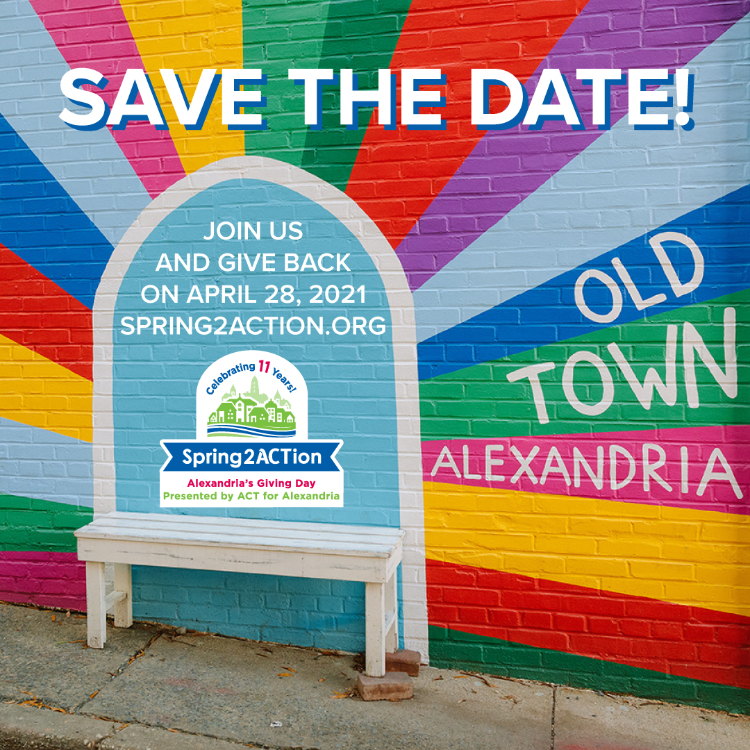 SAVE THE DATE: We are so excited to participate in Spring2ACTion again this year! On April 28th, join us for a day of giving back to the nonprofits that are the heartbeat of this community with Alexandria’s biggest online giving day! It will be a time for Alexandrians to come together, uplift one another, and support the organizations that serve our community. Visit spring2action.org to find out more.
