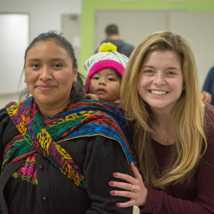 On a chilly night students and volunteers gathered together in the warmth of laughter, great food and the sharing of each other’s cultures. In what’s become an annual celebration at Casa Chirilagua, adult students from our Yo Hablo Ingles (YHI) English language classes gather with their volunteer teachers to celebrate Thanksgiving together. They are served food from volunteers and church staff from Restoration City Church (RCC), as well as potluck items. The menu spans from traditional American Thanksgiving foods to a some central-American dishes. Everyone leaves with a smile and a full belly.