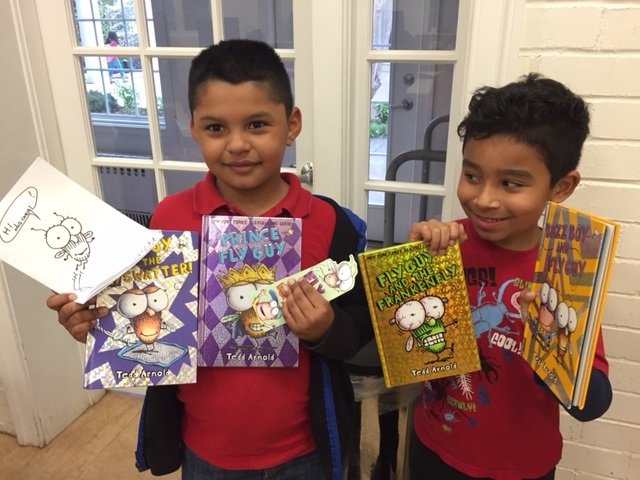 With the help of a wonderful Kids Club volunteer, Mr. John Perlman, two of our Kids Club students wrote to Author Tedd Arnold who wrote “The Fly Guy” book series. His series happens to be a favorite among our Kids Club students. Over John’s many years of working with children, he has helped several children write to their favorite authors but has rarely received a response. His hopes to hear from Mr. Arnold were very low and he was trying to help the boys manage their expectations as well. John commented, “I honestly didn’t think we would hear anything but the kids kept holding out faith and they were sure Mr. Arnold would respond to their letter.”